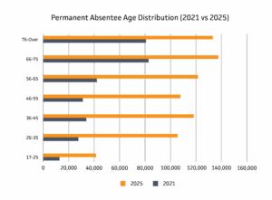 - Voters over 65 continue to hold the largest number of permanent absentee ballots.