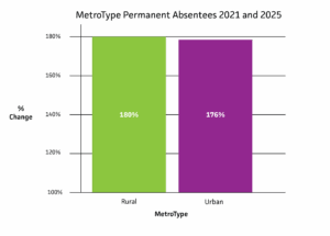 Permanent absentee registration has exploded all over Virginia since 2021. In particular, Rural areas have grown about 4% faster than in urban areas, relative to their 2021 levels. This is a positive trend for conservatives given the strong vote totals Republican candidates receive in these regions.